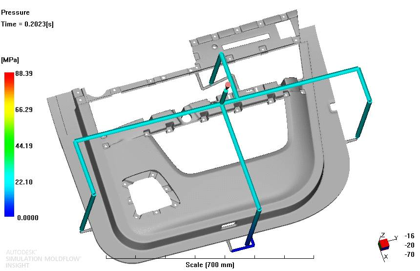 順序閥熱流道控制技術(SVG技術)是一種新型級式控制的熱流道技術,通過油缸控制按順序進膠,解決了傳統多點同步進膠的產品出現外觀缺陷的難題??捎行П苊馄噧韧怙椉霈F熔接痕,氣穴等缺陷,減少流長,降低成型壓力,在外觀要求嚴格的汽車內外飾件上發揮了巨大的作用。